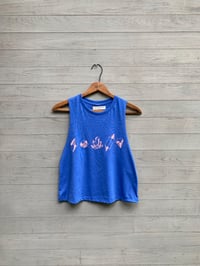 Style: lightweight cropped tank hits just at the belly button. a cotton/poly mix, the armholes have been cut and have a raw edge with a deep opening. nice lightweight top for all your workouts and pairs great with high waisted leggings/pants.