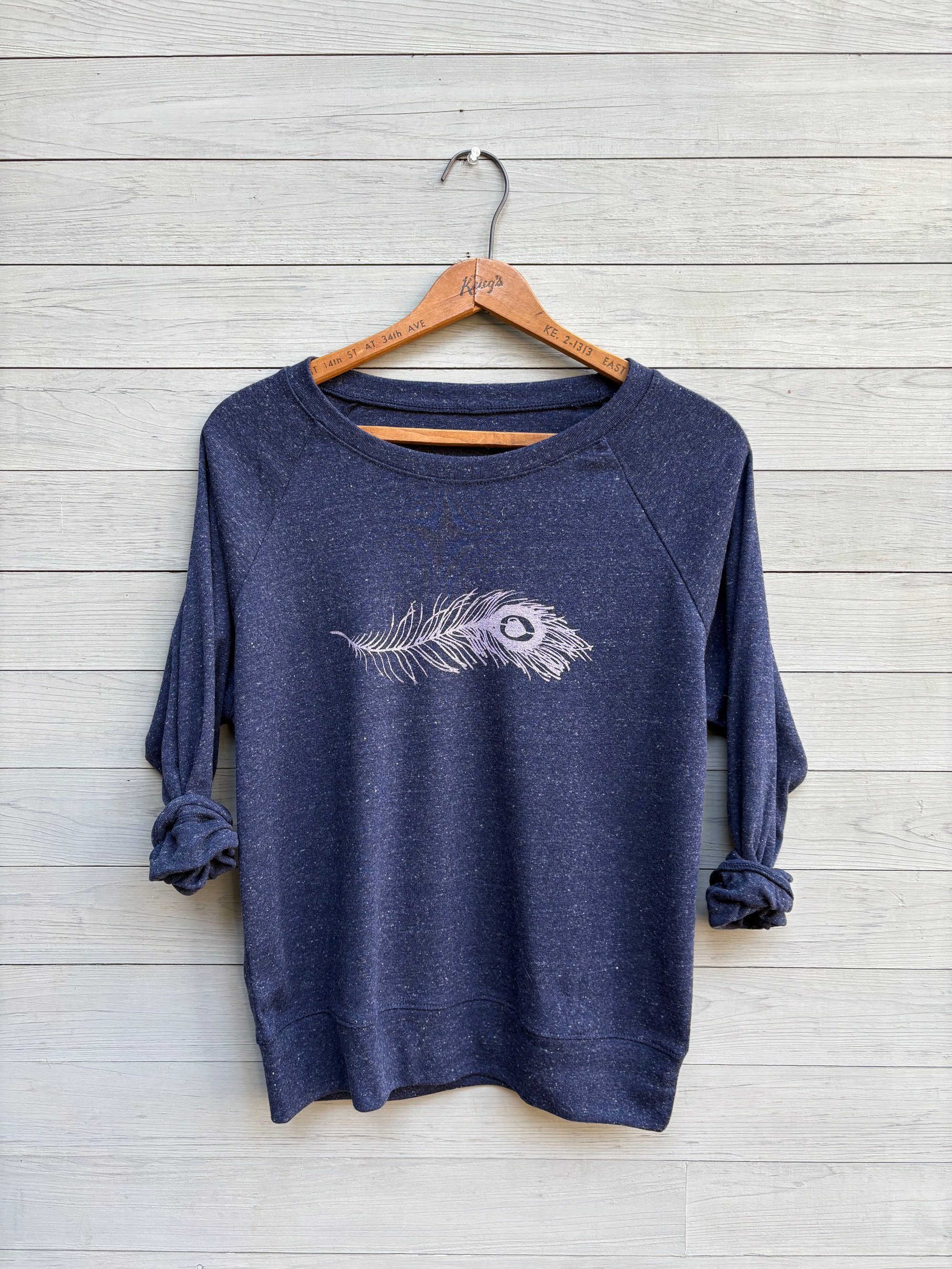 Design: my feather drawing is hand printed in lilac