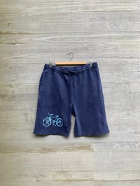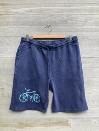 All cotton shorts with an elastic waist, drawstring and side pockets, one back pocket. mid length, mid weight material.