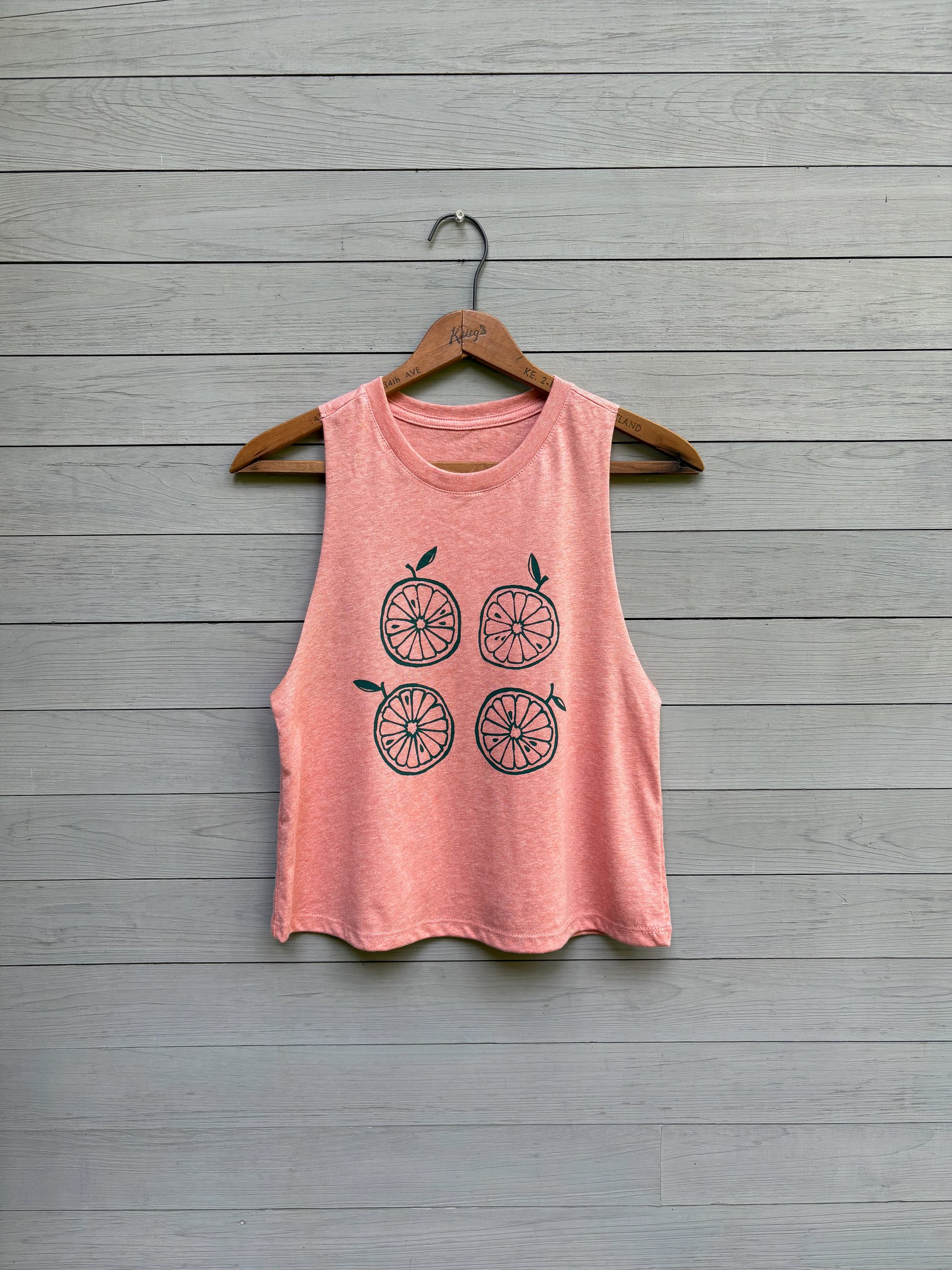 Style: lightweight cropped tank hits just at the belly button. a cotton/poly mix, the armholes have been cut and have a raw edge with a deep opening. nice lightweight top for all your workouts and pairs great with high waisted leggings/pants.